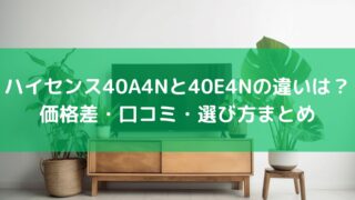 テレビ ハイセンス40A4Nと40E4Nを比較!価格差・口コミ・選び方まとめ ハイセンスの40インチテレビ「40A4N」と「40E4N」。どちらも人気の高いモデルですが、見た目もスペックもそっくりで、どちらを選ぶべきか迷う方が多いですよね。結論から言うと、違いは「販売ルート」と「価格」の2点だけです。どちらもフルHD... 2025.10.09 テレビ